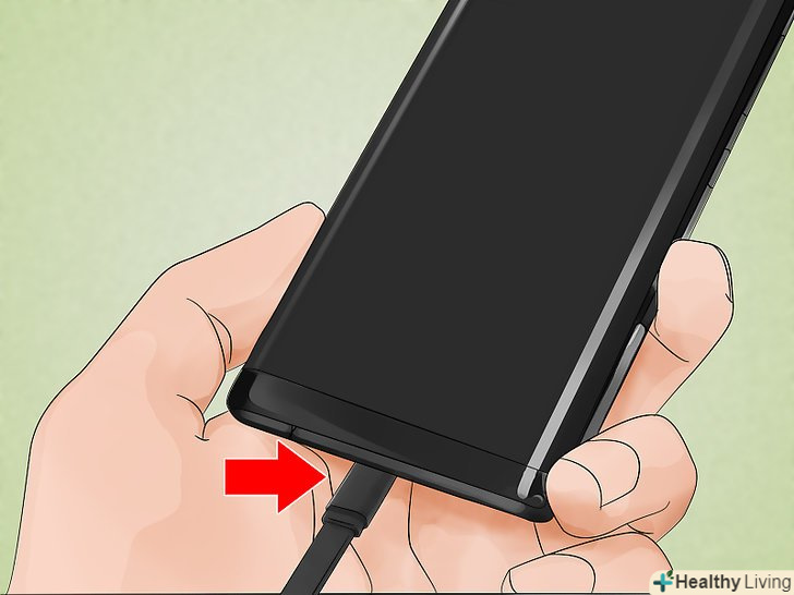 Зарядіть батарею пристрою і включіть його.підключіть пристрій до джерела живлення принаймні на 15 хвилин. Потім увімкніть пристрій, натиснувши кнопку в його нижній частині. Якщо пристрій не включається, дозвольте акумулятору зарядитися протягом більш тривалого проміжку часу.[17]