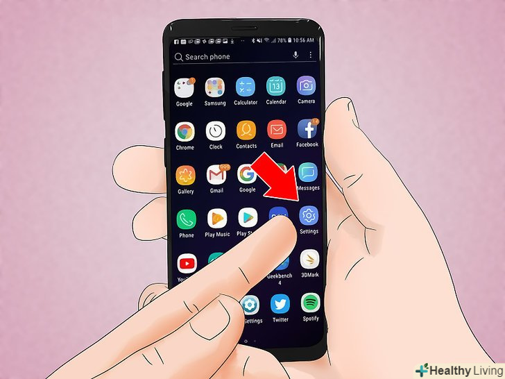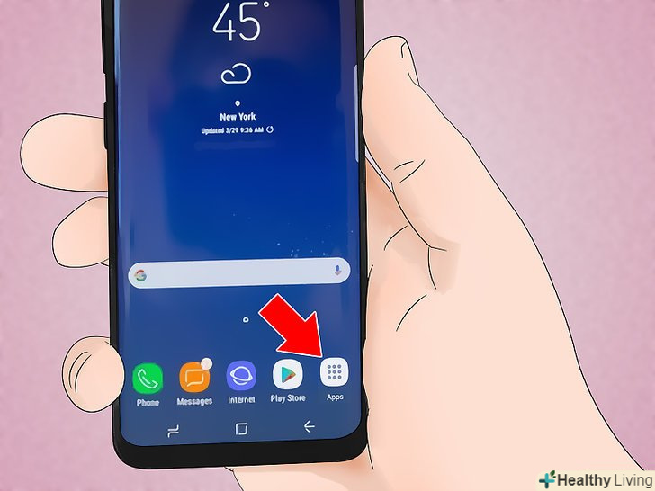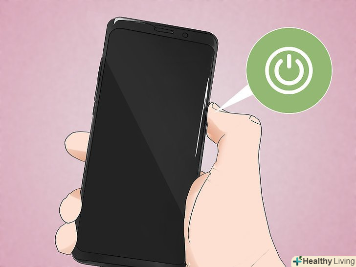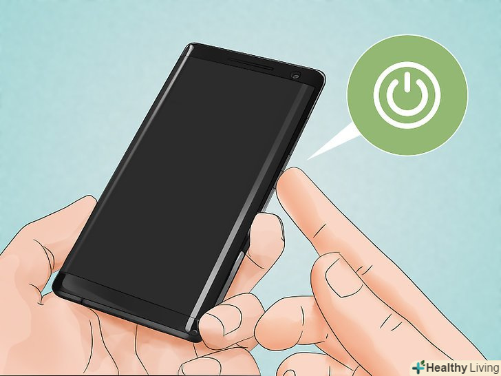 Увімкніть смартфон.натисніть кнопку в нижній частині смартфона. Якщо пристрій не включається, то, швидше за все, його акумулятор розряджений. Підключіть смартфон до джерела живлення і почекайте п'ятнадцять хвилин, а потім ще раз спробуйте включити його.[6]