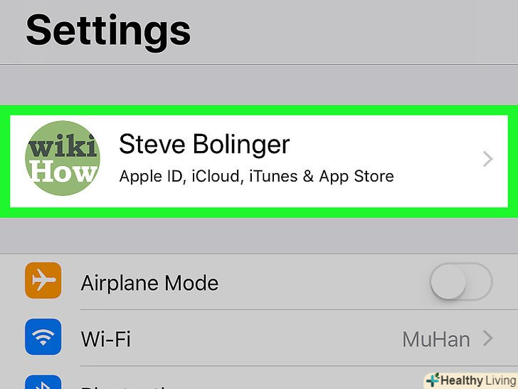 Торкніться свого імені.ви знайдете своє повне ім'я та зображення у верхній частині екрана. Відкриється меню Apple ID.