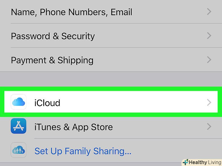 НатиснітьICloud. Ця опція відзначена значкомі знаходиться в меню Apple ID.