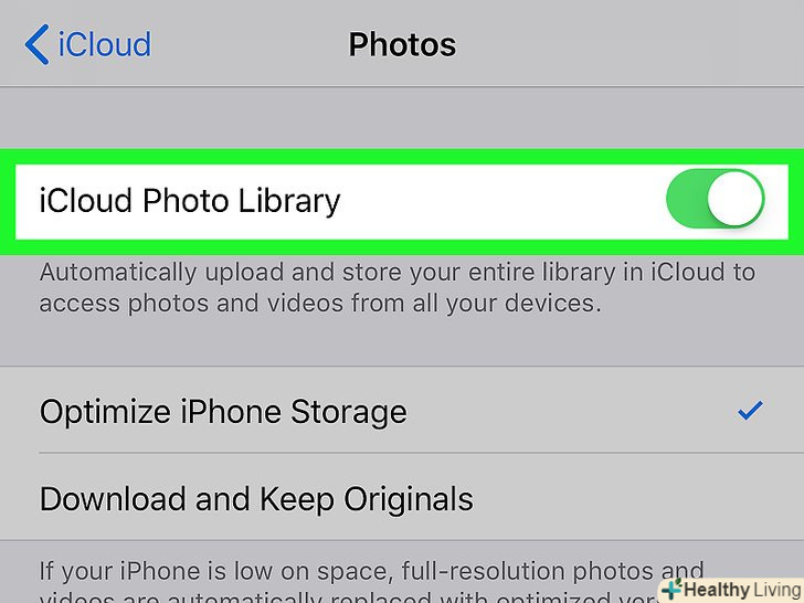 Пересуньте повзунок уФототека iCloud положення.відтепер всі ваші фотографії будуть автоматично завантажуватися в iCloud.