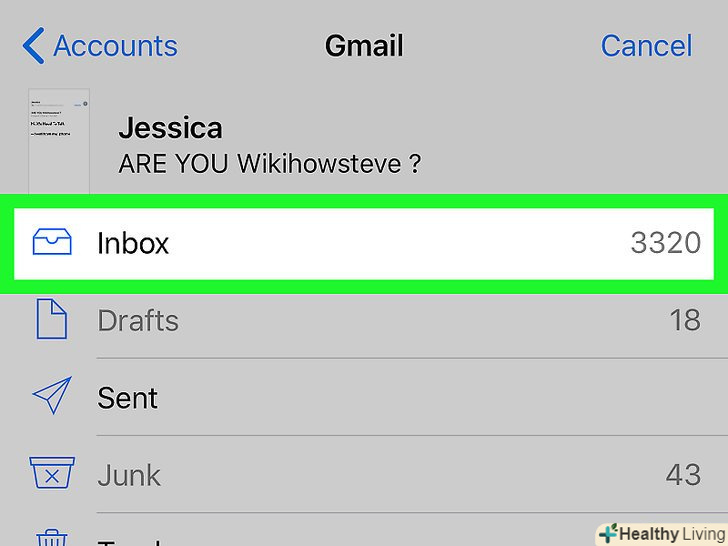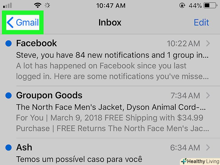 Торкніться значка у вигляді спрямованої вліво стрілки.ви знайдете його в лівому верхньому кутку. Відкриється меню "поштові скриньки".