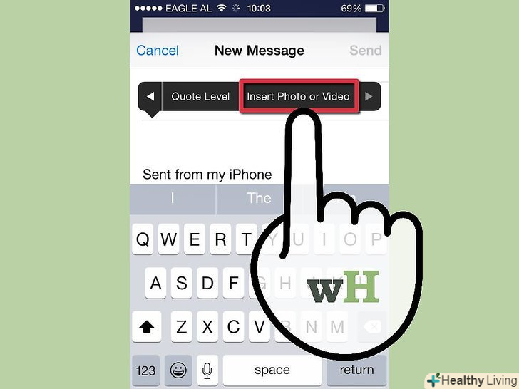 - В iPhone, можливо, буде потрібно використовувати стрілки спливаючого меню, щоб отримати доступ до кнопки Вставити фото або відео.