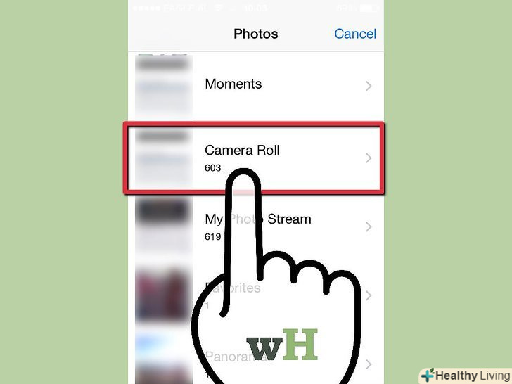 З'явиться додаток фотографії.натисніть на зображення або відео, яке ви хочете додати до Вашого електронного листа.