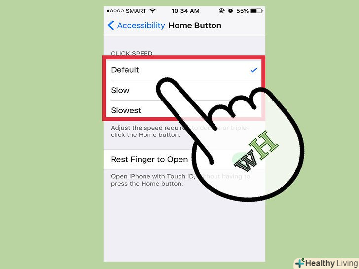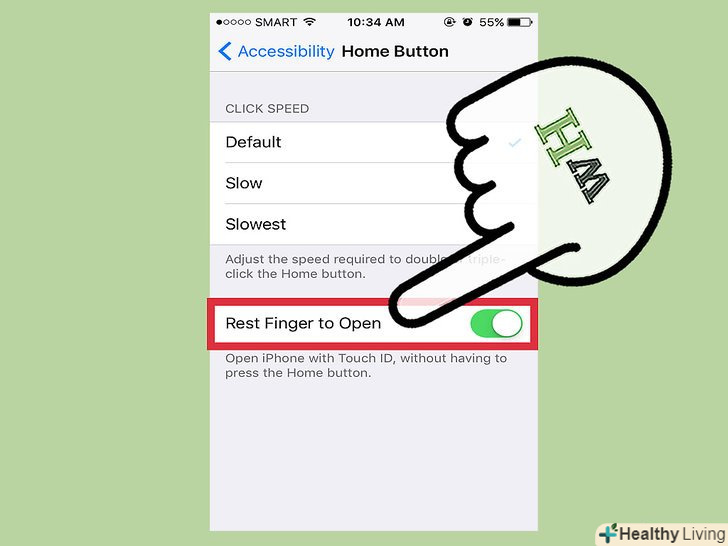 Використовуйте функцію "відкриття, приклавши палець", щоб скоротити знос кнопки"Додому".пристрої iOS відомі тим, що кнопки блокування і" додому " часто і легко ламаються. Користуючись функцією" відкриття, приклавши палець", ви скоротите кількість натискань цих кнопок.