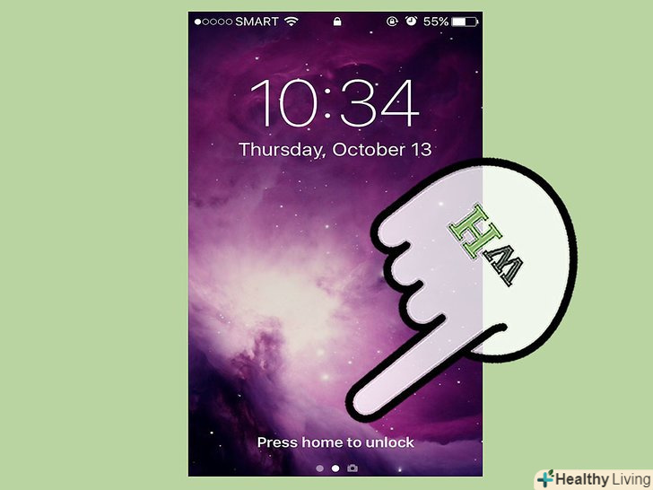 Розблокуйте пристрій iOS. щоб активувати функцію "відкриття, приклавши палець", на вашому пристрої повинна бути iOS 10 і сенсор Touch ID.- Щоб розблокувати пристрій, Натисніть і утримуйте кнопку "додому", потім натисніть ще раз, коли з'явиться екран блокування.