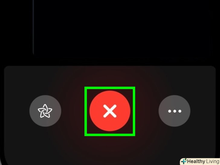 Залиште відеочат FaceTime. дзвінок завершити не можна — але можна вийти з відеочату-для цього торкніться значка " X " внизу екрану.- Коли всі учасники покинуть відеочат, дзвінок FaceTime буде завершено.