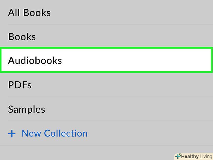 НатиснітьКниги.ця опція знаходиться в лівій частині екрана.- Натисніть "аудіокниги", щоб переглянути список придбаних аудіокниг.