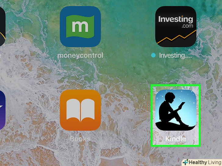 Запустіть програму Kindle.натисніть на синю кнопку з силуетом читача і словом "Kindle".- Якщо на пристрої цього додатка немає, скачайте його в App Store.