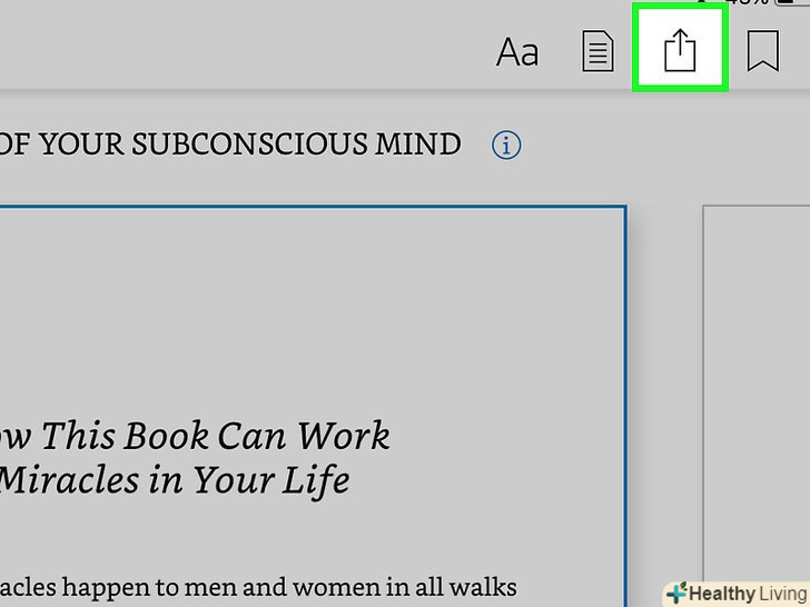 Натисніть "поділитися". це значок у вигляді квадрата з спрямованою вгору стрілкою. Залежно від книги / документа він буде знаходитися у верхньому правому або верхньому лівому кутку екрану.