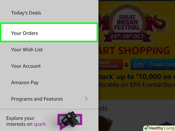 НатиснітьYour Orders (Ваші замовлення).ця опція знаходиться в нижній правій частині екрана.- Якщо з'явиться запит, введіть адресу електронної пошти та пароль, пов'язані з обліковим записом Amazon, або натисніть кнопку "додому", якщо включений датчик Touch ID.