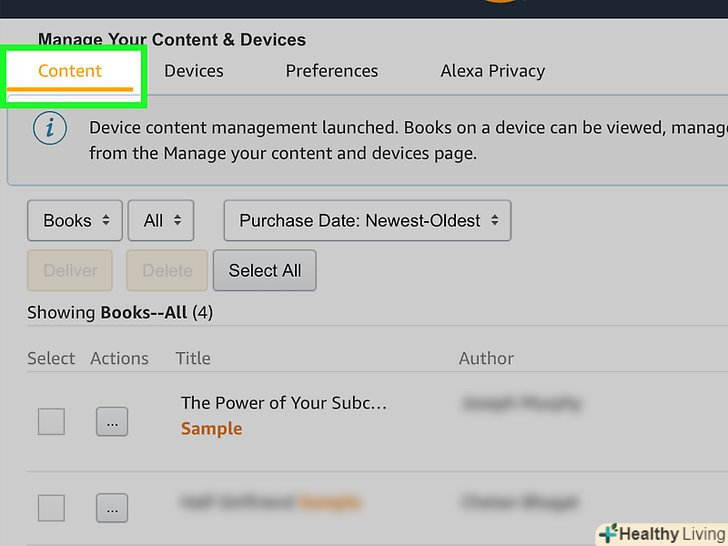 НатиснітьContent and devices (Контент і пристрої).ця опція знаходиться в лівій частині екрана.