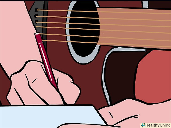 Почніть писати пісні.пишіть якомога більше пісень, не жертвуючи якістю заради кількості. Пам'ятайте, що якщо ви хочете стати хедлайнером концерту, ваш репертуар повинен складатися хоча б з 11-12 пісень, щоб вкластися у відведений час.- Група на розігріві повинна мати 4-5 пісень, так що підготуйте 5 хороших пісень, щоб розігрівати вже більш відомі групи спочатку.