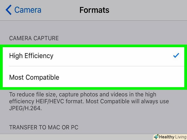 Виберіть формат, який відповідає вашим потребам.- Краща сумісність - фотографії будуть більш якісними, тому що будуть зберігатися в форматі JPEG, але дозвіл відеороликів знизиться.