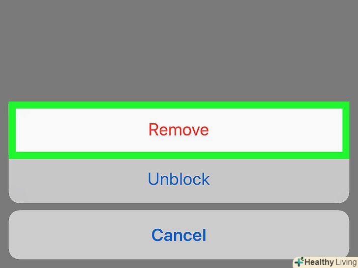 ВиберітьПриховати або Заблокувати.оскільки віддалений контакт не можна відновити, виберіть будь-яку з цих опцій.- Якщо ви не хочете назавжди видаляти контакт, виберіть одну із зазначених опцій, дію якої можна потім скасувати. Виберіть "приховати", щоб людина не відображався в списку друзів, але ви будете отримувати його повідомлення. Виберіть "заблокувати", щоб не отримувати від людини повідомлення.[2]