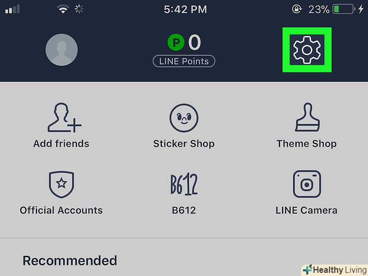 Натисніть на значок у вигляді шестерінки.ви знайдете його у верхньому правому куті. Відкриються Налаштування LINE.