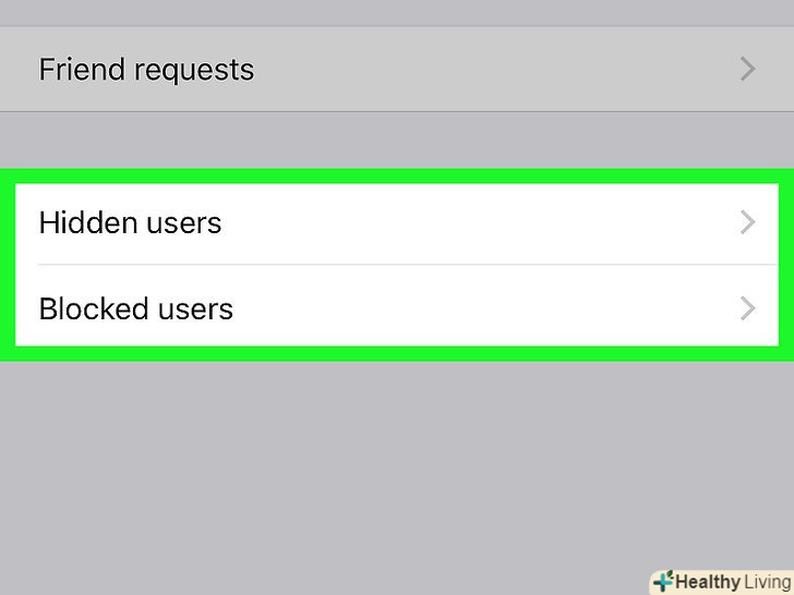 НатиснітьПриховані користувачі або Заблоковані користувачі. виберіть опцію в залежності від того, прихований користувач або заблокований.