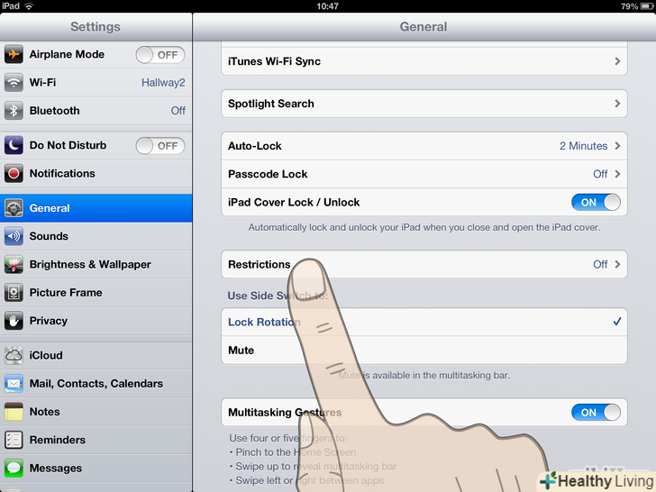 Натисніть вкладку " Основні "(General), потім «обмеження» (Restrictions).