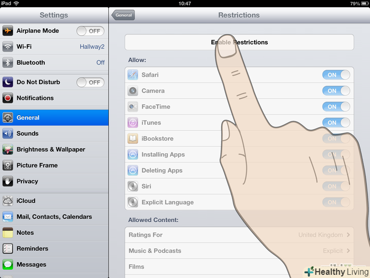 Виберіть " Включити обмеження "(Enable Restrictions).