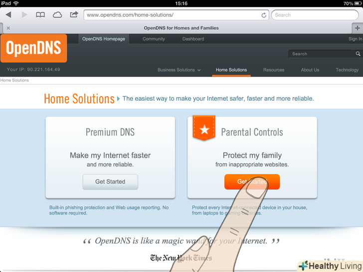 Відкрийте www.opendns.com/home-solutions і натисніть на кнопку "Get Started" нижче функції "Parental Controls".