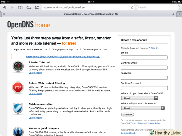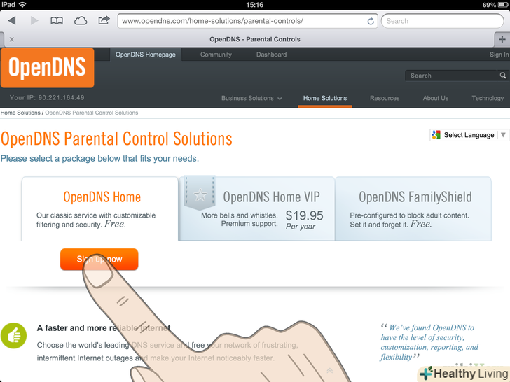 Підпишіться на безкоштовний сервіс OpenDNS Home, натиснувши «OpenDNS Home» і клікнувши по кнопці «Sign up now».