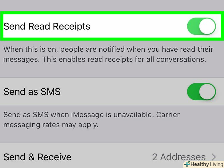 - Пересуньте повзунок у "відправляти звіти про прочитання «в положення» включити" (зелений).