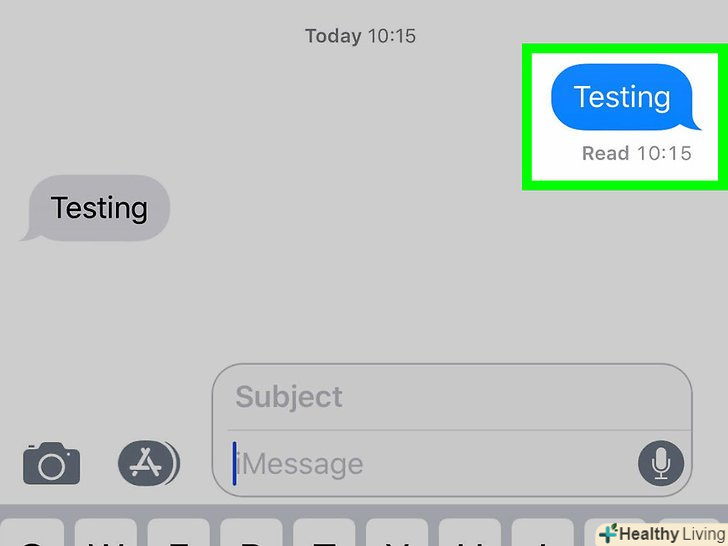 З'ясуйте, чи користується людина, якій ви відправляєте повідомлення, службою iMessages. тільки в цьому випадку ви дізнаєтеся, що повідомлення прочитано.- Якщо вихідні повідомлення пофарбовані в синій колір, людина користується iMessages.