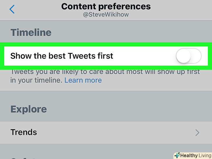 Посуньте перемикачПоказувати спочатку кращі твіти положення. поки ця опція відключена, розділ "поки вас не було" не буде з'являтися у вашій стрічці.
