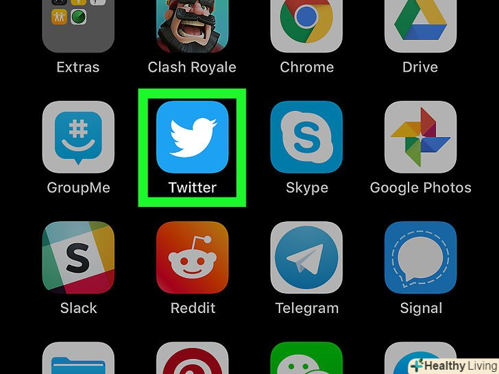 Запустіть Twitter на своєму iPhone або iPad.Іконка Twitter виглядає як білий птах у синьому квадраті. Знайти її можна на одному з робочих столів або в пункті управління.