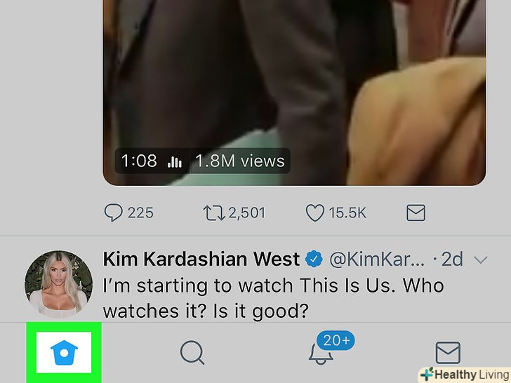 Торкніться значка "додому".ця кнопка виглядає як маленька піктограма будинку в нижньому лівому куті екрана. Відкриється ваша стрічка.