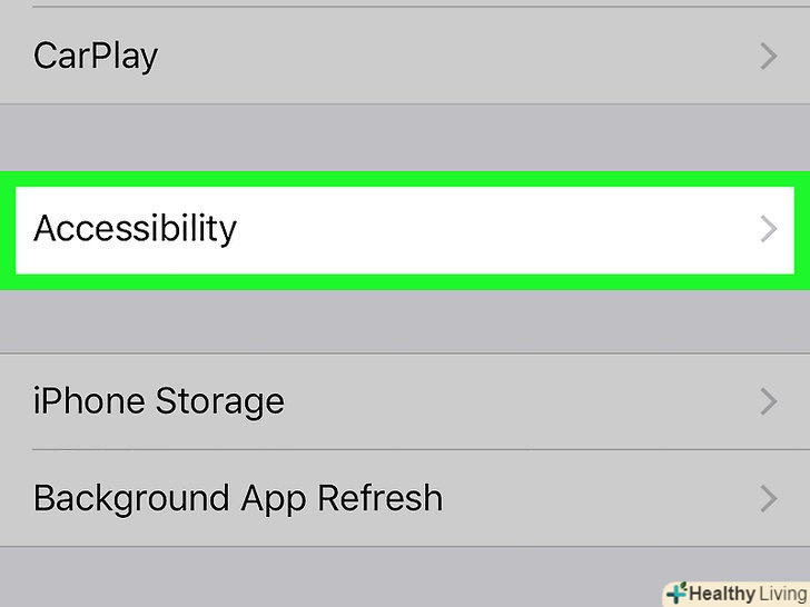 Перейдіть в розділ "Універсальний доступ". виберіть Універсальний доступ зі списку налаштувань. Тут містяться параметри і функції, які можуть спростити роботу пристрою.[3]
