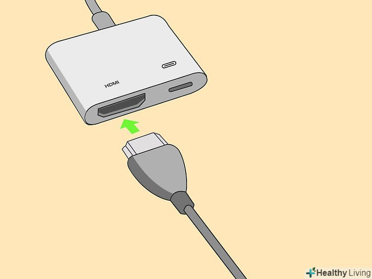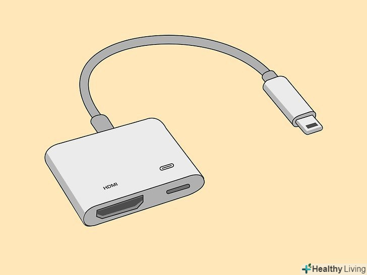 Купуйте адаптер HDMI-iPad.компанія Apple продає цифровий AV-адаптер, який підключається до зарядного гнізда iPad, за 4090 рублів. (HDMI-кабель підключається до адаптера і HDMI-роз'єму телевізора.)- Якщо у вас немає кабелю HDMI, купіть його.