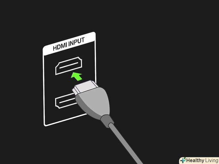 Підключіть адаптер до телевізора.Підключіть один кінець кабелю HDMI до адаптера, а інший-до HDMI-роз'єму на задній або бічній панелі телевізора.- Якщо на телевізорі немає HDMI-роз'єму і Ви користуєтеся адаптером HDMI–RCA, підключіть цей адаптер до кабелю HDMI і до джерела живлення, а потім підключіть червоний, жовтий і білий кабелі від адаптера HDMI–RCA до A/V-роз'єму на задній панелі телевізора.
