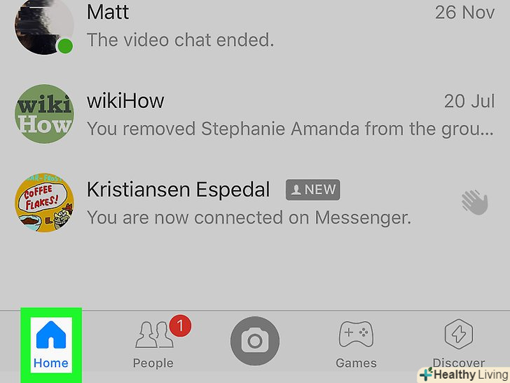 Клацніть по вкладціГоловна. це значок у вигляді будиночка, який розташований в лівому нижньому кутку екрану. Відкриється список чатів.
