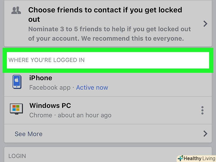 Знайдіть розділ "звідки ви увійшли".у ньому ви знайдете всі активні сеанси, в тому числі в акаунтах Facebook і Messenger.