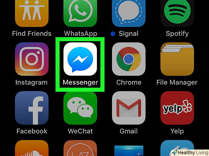 Запустіть програму Messenger. натисніть на синій значок у вигляді мовного хмари з блискавкою.