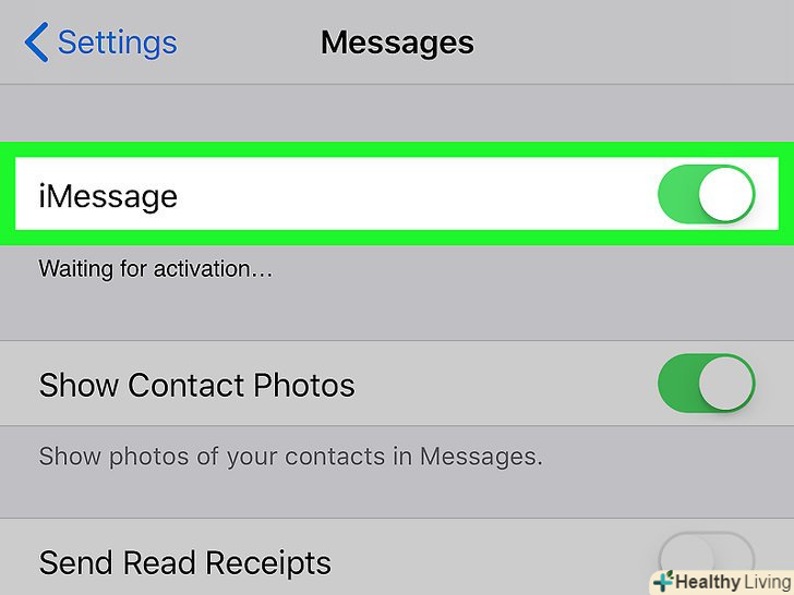 Пересуньте повзунок у «iMessage» в положення «Включити».якщо він вже зелений, пропустіть цей крок.