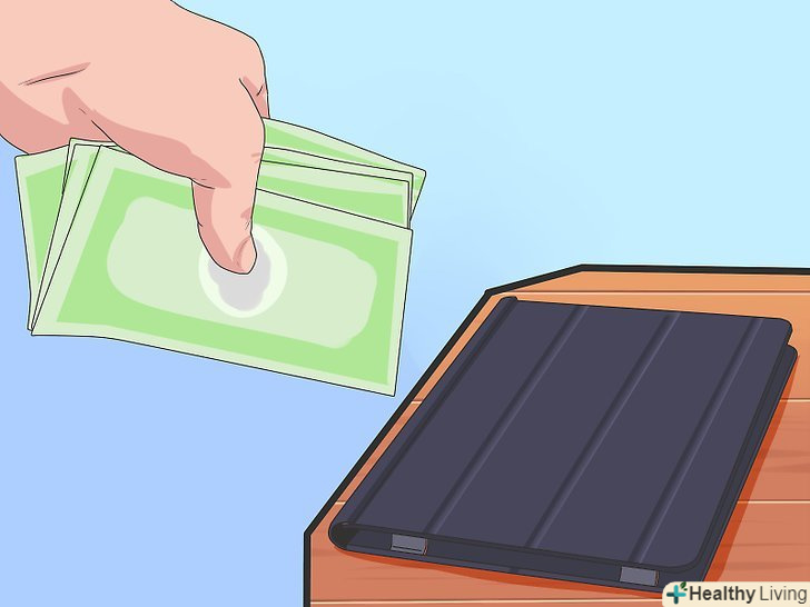 Ніколи не розпилюйте будь-які рідини безпосередньо на iPad.вологість + відкритий iPad = катастрофа. За загальним правилом намагайтеся не використовувати рідини при очищенні iPad, щоб захистити його олеофобне покриття.- Якщо ви відчуваєте, що є необхідність скористатися рідиною для очищення iPad, виберіть щось на зразок Iklenz Cleaner Solution.[3] даний засіб відштовхує пил, а до того ж вбиває бактерії. При правильному застосуванні зазначена очищаюча рідина повинна також надати блиск без розлучень.