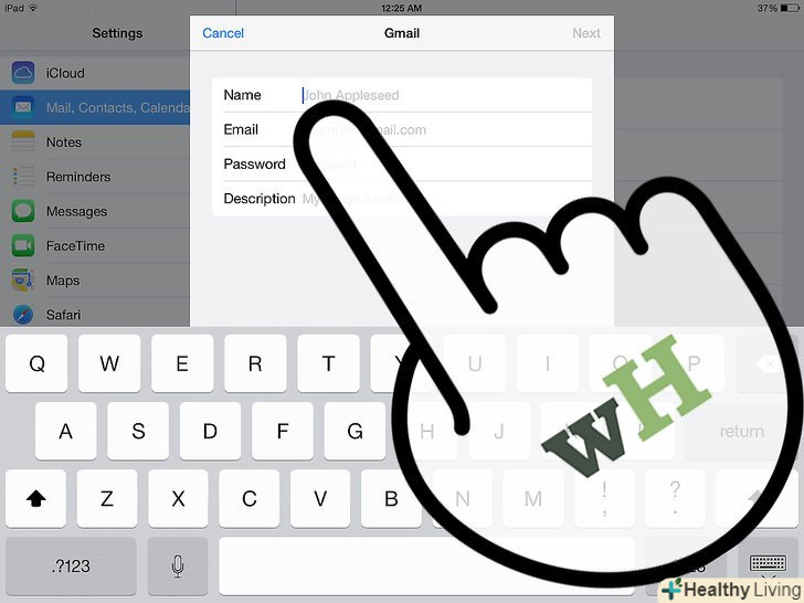 Введіть дані свого облікового запису Google. а саме введіть адресу Gmail і пароль.- Примітка: Якщо ввімкнено двоетапну автентифікацію Google, створіть пароль, щоб синхронізувати свій обліковий запис Google з iPad.