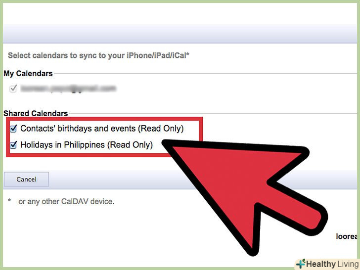 Встановіть прапорці біля кожного календаря, який хочете синхронізувати.якщо ви створите календар або з вами хтось поділиться календарем, поверніться на вказаний сайт і встановіть прапорці біля нових календарів.