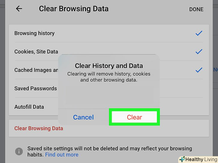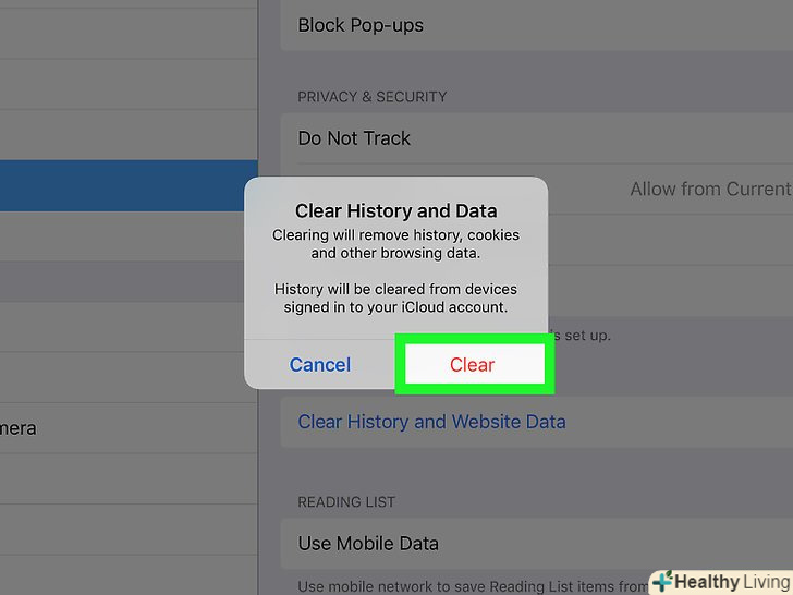 НатиснітьОчистити, коли з'явиться запит.так ви видалите історію браузера Safari.
