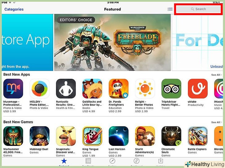Знайдіть додаток, значок якого хочете додати на головний екран iPad.Facebook Facebook, наприклад, щоб додати піктограму в рядку пошуку, введіть «Facebook " у рядку пошуку. ».