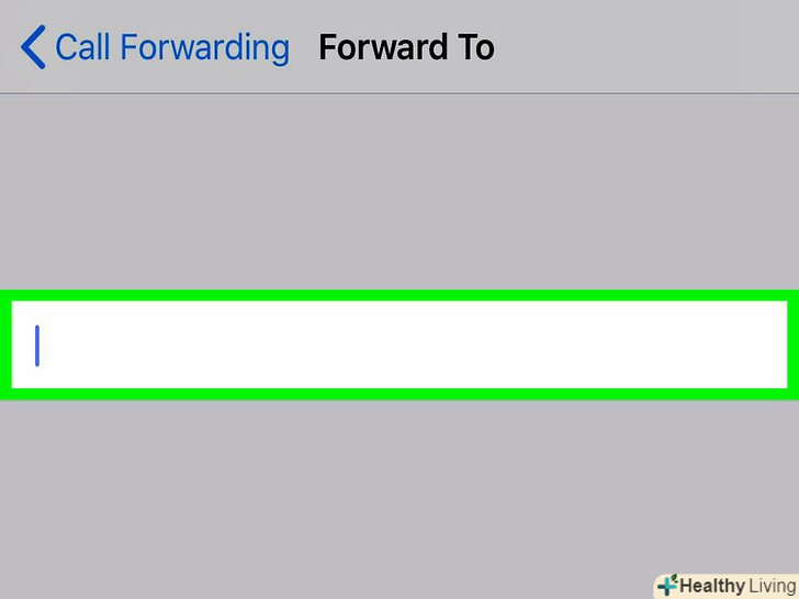 Введіть номер телефону своєї голосової пошти.введіть номер телефону своєї скриньки голосової пошти. Тепер всі вхідні дзвінки будуть перенаправлятися на голосову пошту.- У цьому полі також можна ввести неіснуючий або невикористаний номер телефону. Дзвінки не будуть переадресовуватися на голосову пошту, але це створить враження, що ваш номер був відключений і більше не використовується.