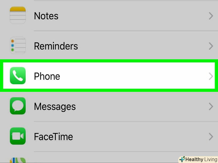 Прокрутіть вниз і торкнітьсяТелефон. Ця опція вказана поруч з іконкоюв меню налаштувань.