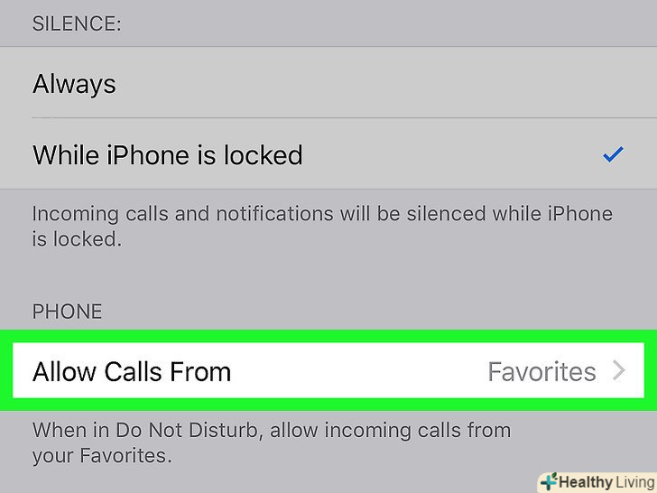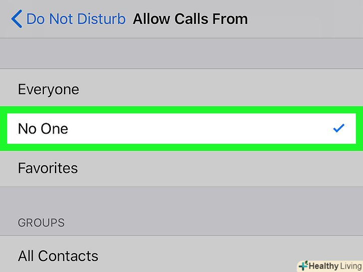 Виберіть, які дзвінки ви будете отримувати в режимі "не турбувати".щоб заблокувати всі вхідні дзвінки, виберіть опцію "ніхто".- Щоб отримувати дзвінки від людей, які є в списку обраних, виберіть опцію "вибрані".