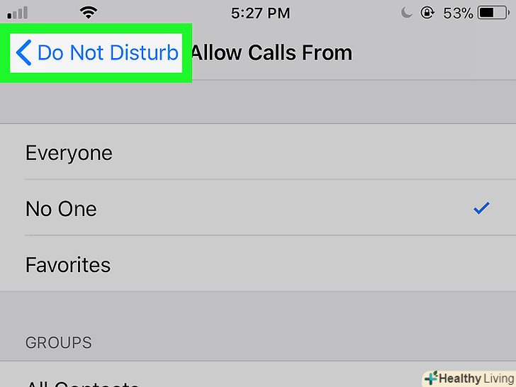 Натисніть кнопку "Назад".ви повернетеся на екран "не турбувати".