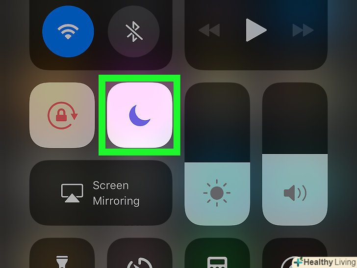 Натисніть на значок у вигляді Місяця. це четвертий значок у верхній частині екрана. Якщо місяць сіра, вона забарвиться в білий колір-це означає, що режим» не турбувати " включений. У цьому режимі вхідні дзвінки будуть заблоковані.- Якщо ви не бачите вказаний значок, в Інтернеті пошукайте інформацію про те, як налаштувати Пункт управління на iPhone/iPad.