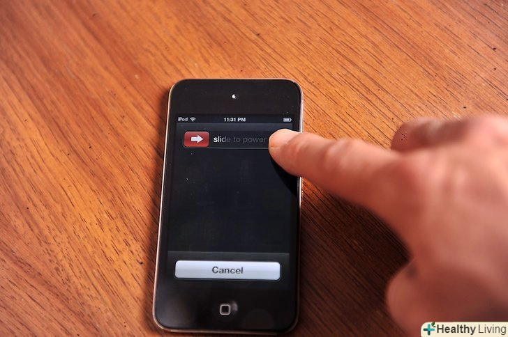Пальцем перетягніть слайдер вправо. Ваш iPod почне вимикатися. Переконайтеся, що він повністю вимкнений, перш ніж натискати будь-які інші кнопки.