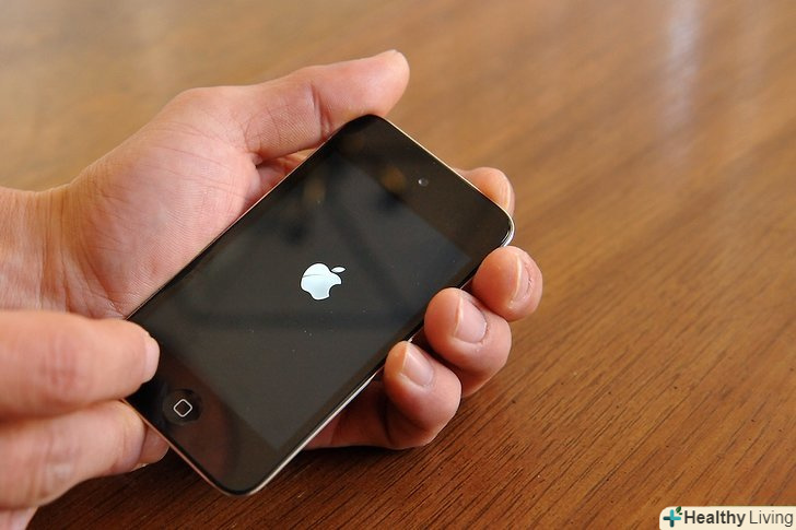 Одночасно затисніть клавішу включення і кнопку Home.кнопка Home є центральною і знаходиться в нижній частині iPod. Тримайте затиснутими обидві кнопки протягом 10 секунд. Під час перезавантаження iPod з'явиться логотип Apple.