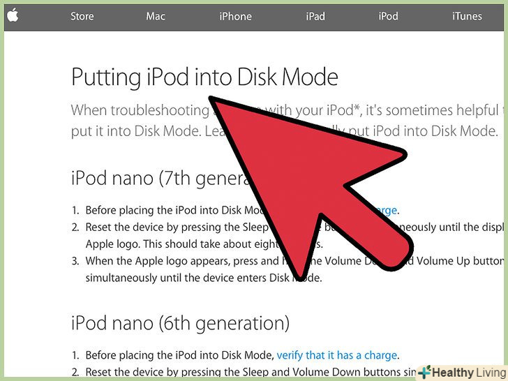 Примітка: дані рекомендації застосовні тільки до iPod, на яких може бути включено "використання в якості диска", для того щоб вони могли використовуватися в якості портативного жорсткого диска і, таким чином, могли надавати доступ до наявних на них файлів. Сюди входять наступні моделі: iPod, iPod classic, iPod nano, iPod nano (2-го покоління), iPod nano (3-го покоління), iPod nano (4-го покоління), iPod nano (5-го покоління), iPod nano (6-го покоління). Непридатне для: iPod Touch, iPhone.